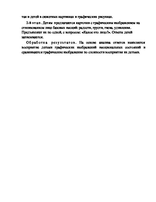 низкий уровень – дети не понимают эмоциональное состояние как взрослых,так и детей в сюжетных картинках и графических рисунках.