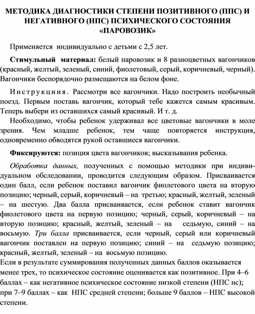диагностики степени позитивного (ППС) и негативного (НПС) психического
