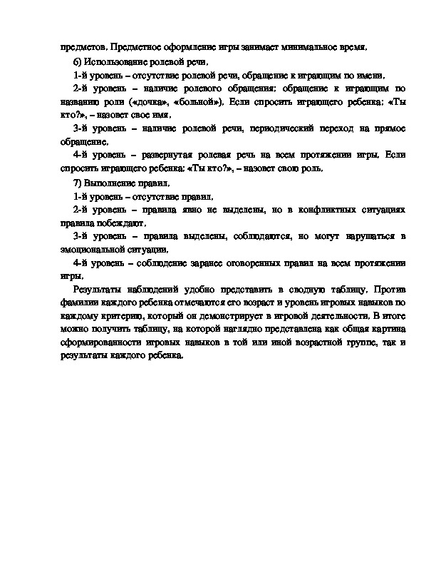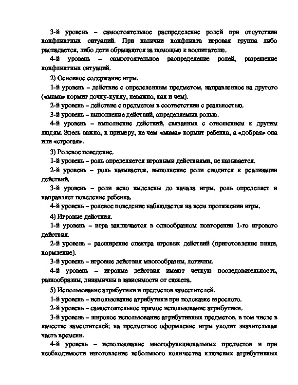1й уровень – отсутствие ролевой речи, обращение к играющим по имени.