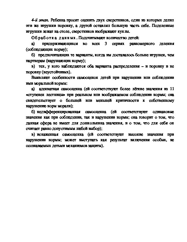 свое «новое» поведение.4й этап. Ребенка просят оценить двух сверстников, один из которых делил