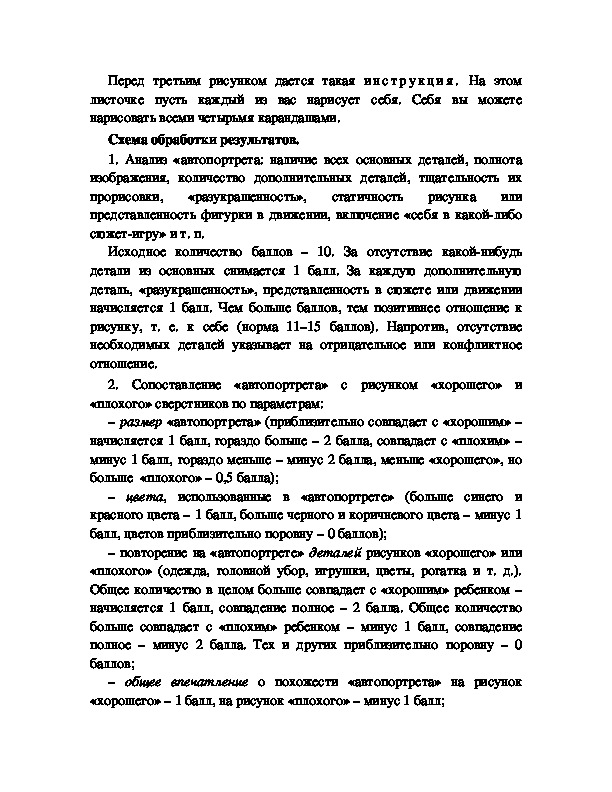 рисунку, т. е. к себе (норма 11–15 баллов). Напротив, отсутствие