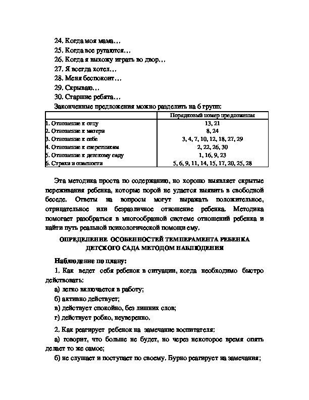 МЕТОДИКА «НЕОКОНЧЕННЫЕ ПРЕДЛОЖЕНИЯ»