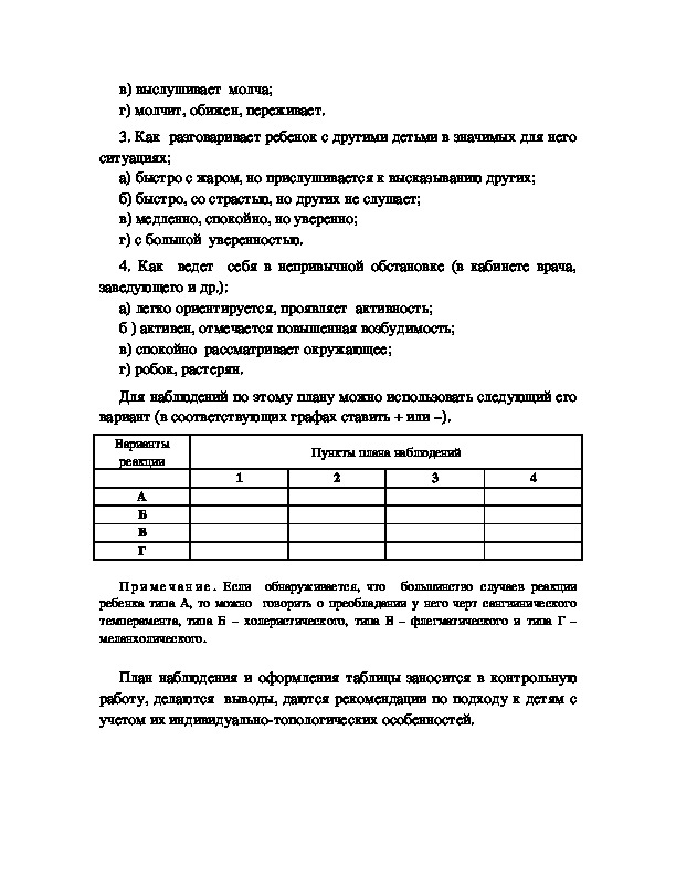 б) не слушает и поступает по своему. Бурно реагирует на замечания;в) выслушивает молча;