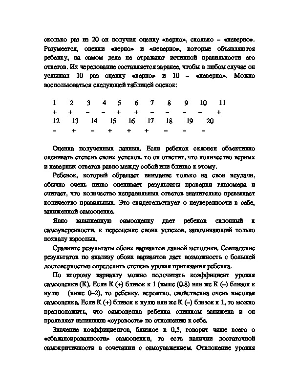 самооценка. Если К (+) близок к нулю или же К (–) близок к 1, то можно