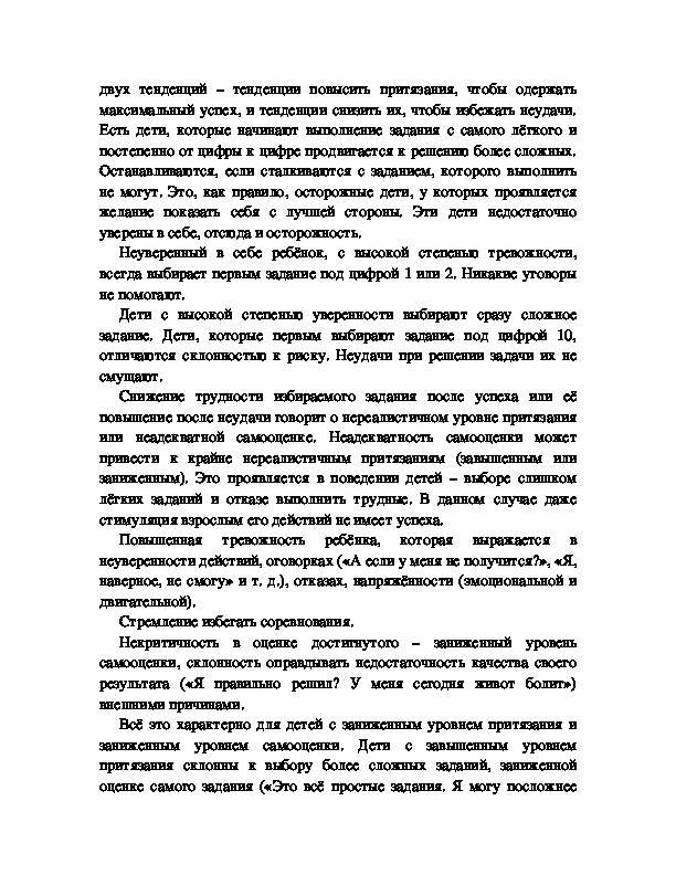 заниженным). Это проявляется в поведении детей – выборе слишком