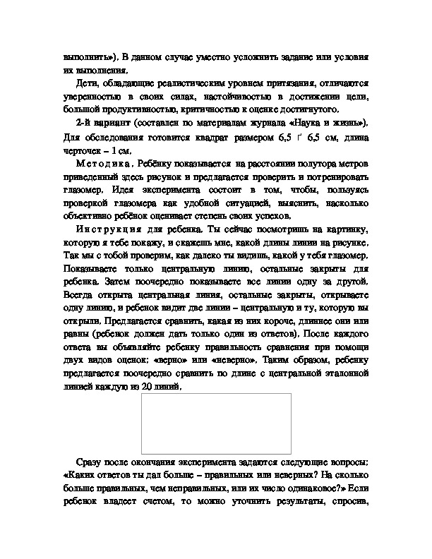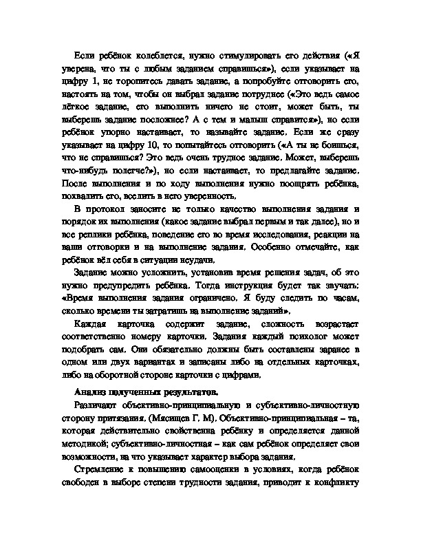 МЕТОДИКА «ОЦЕНКА УРОВНЯ ПРИТЯЗАНИЯ РЕБЁНКА»