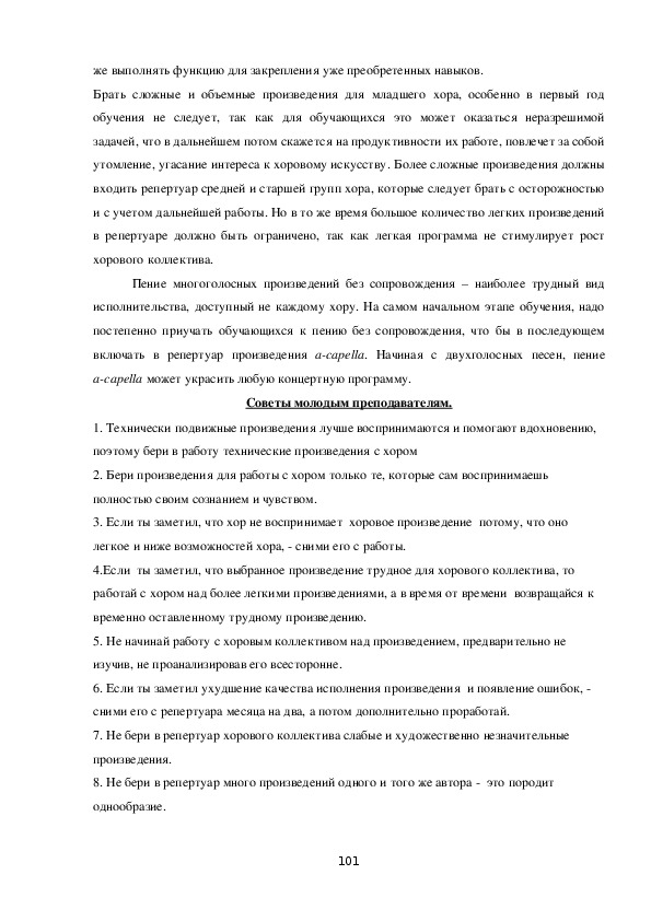 материала и репертуара уровню знаний и умений исполнителей;