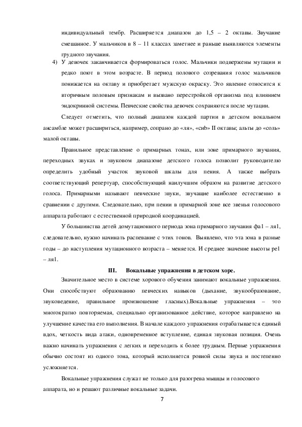 III.Вокальные упражнения в детском хоре.............................................................7
