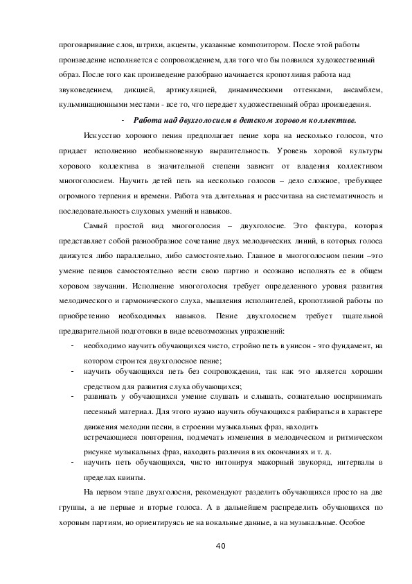Работа над двухголосием в детском хоровом коллективе.................................40