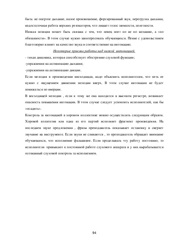 воспитания закладываются профессиональные навыки пения: интонирование,