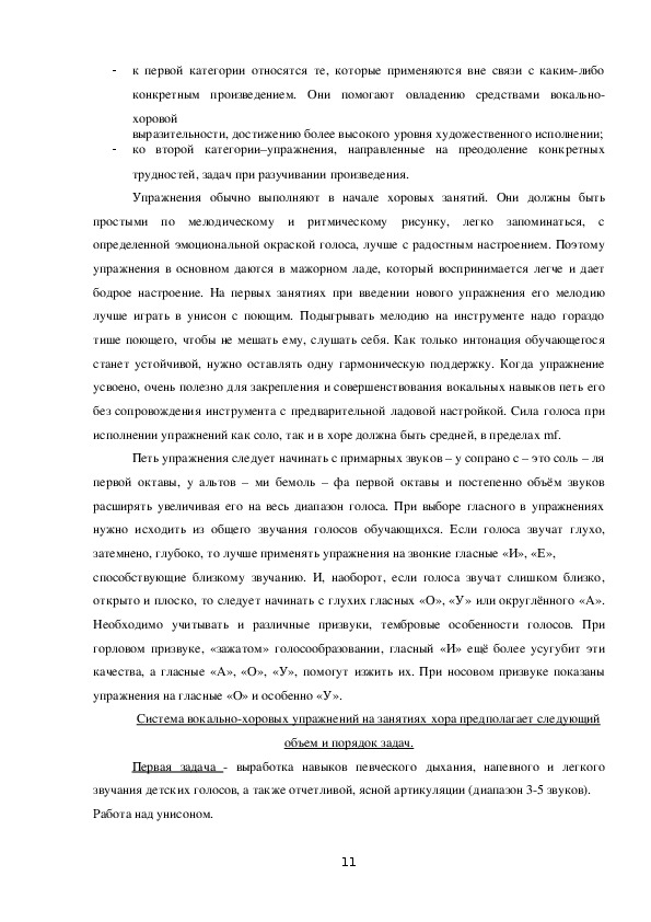 Значительное место в системе хорового обучения занимают вокальные упражнения.