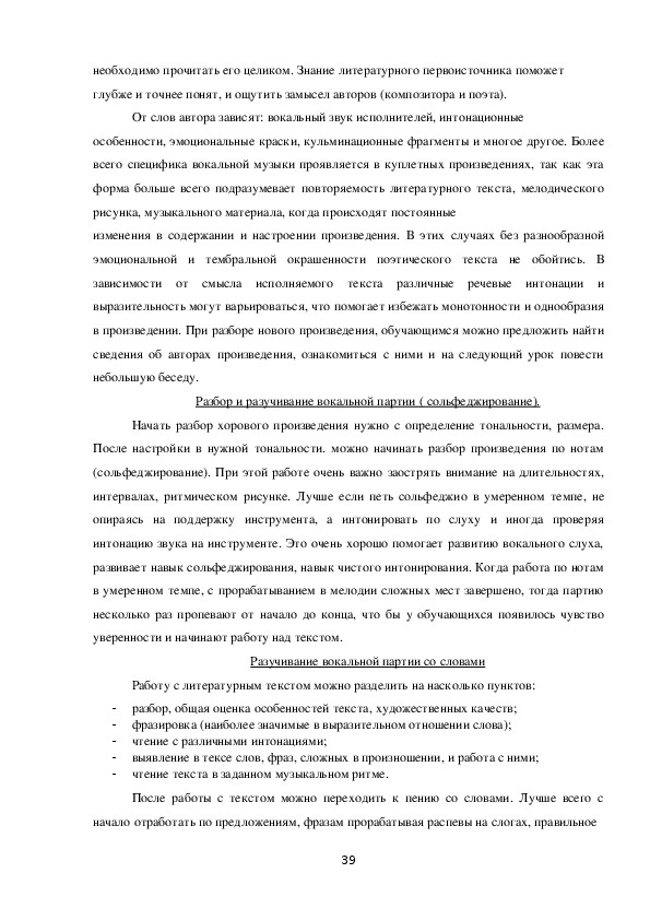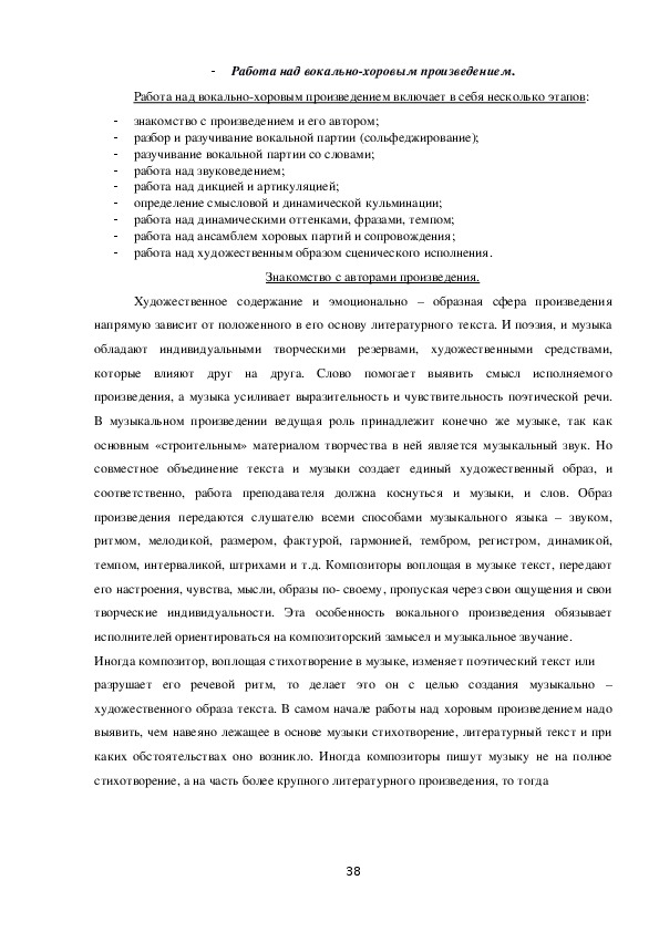 Работа над вокально-хоровым произведением....................................................38