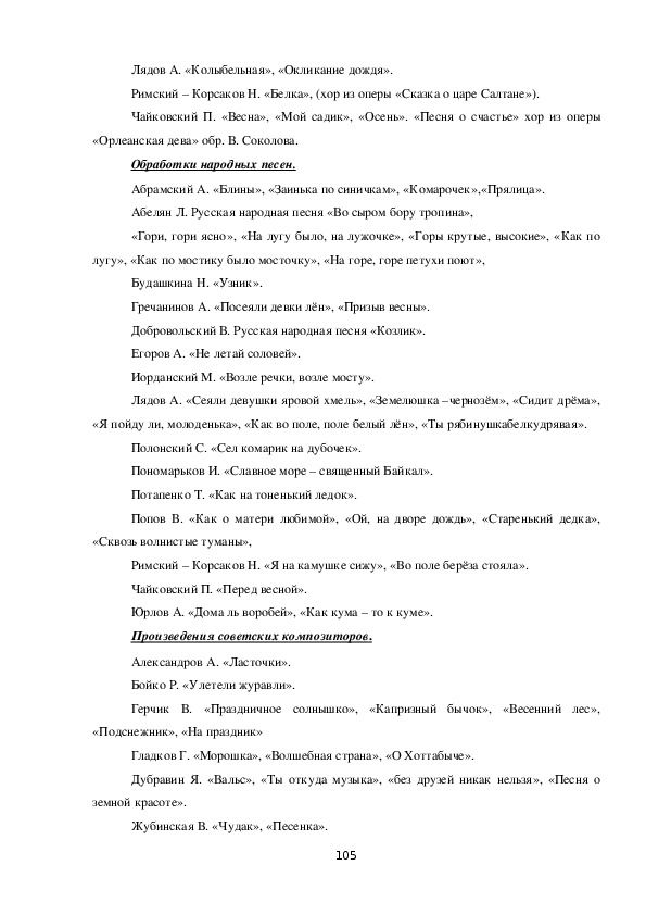 соответствующий репертуар, способствующий наилучшим образом на развитие детского