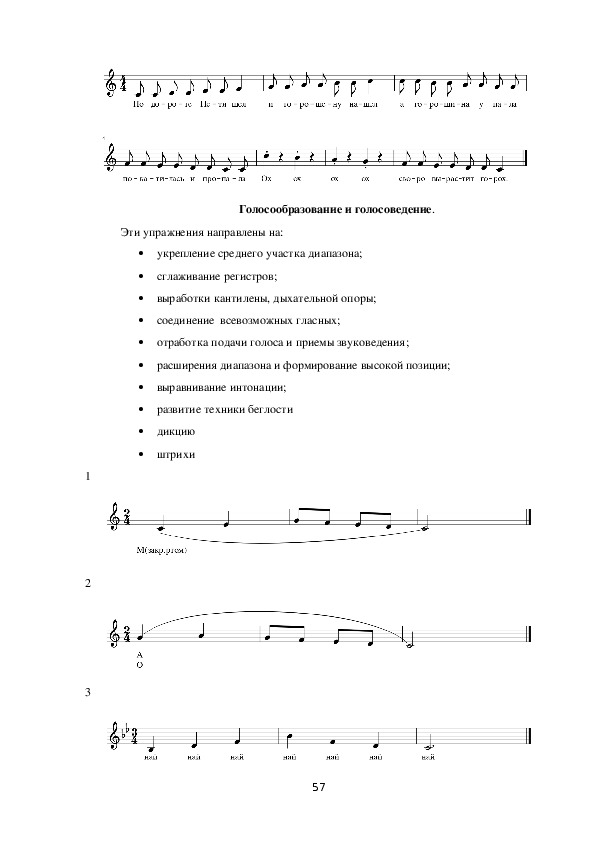 звуковедение, правильное произношение гласных).Вокальные упражнения – это