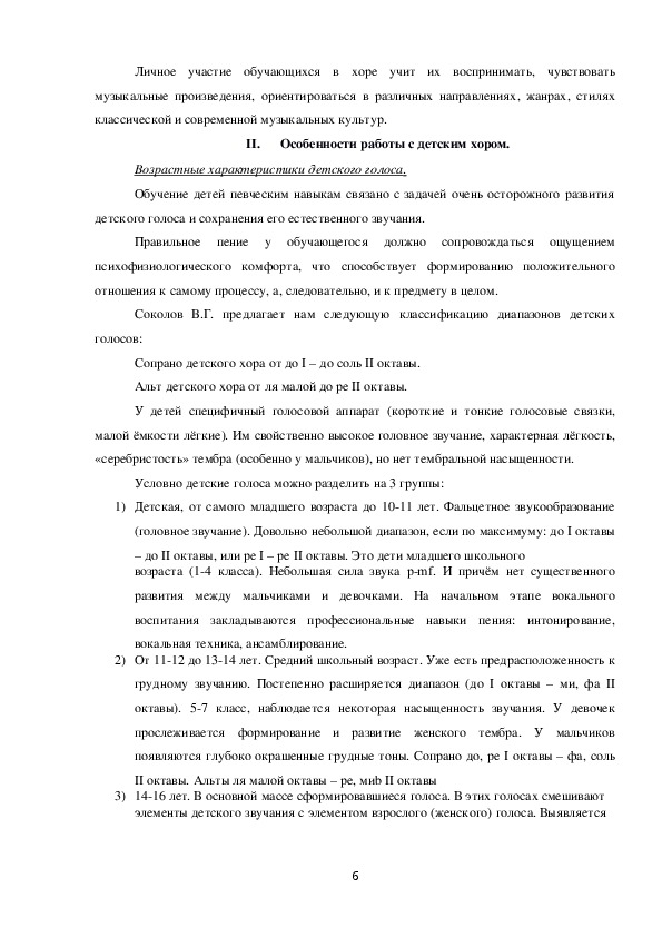 II.Особенности работы с детским хором.................................................................6