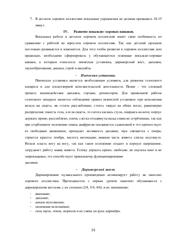 IV.Развитие вокально- хоровых навыков...............................................................15