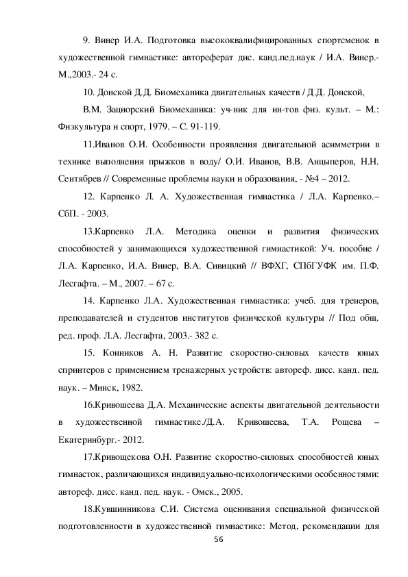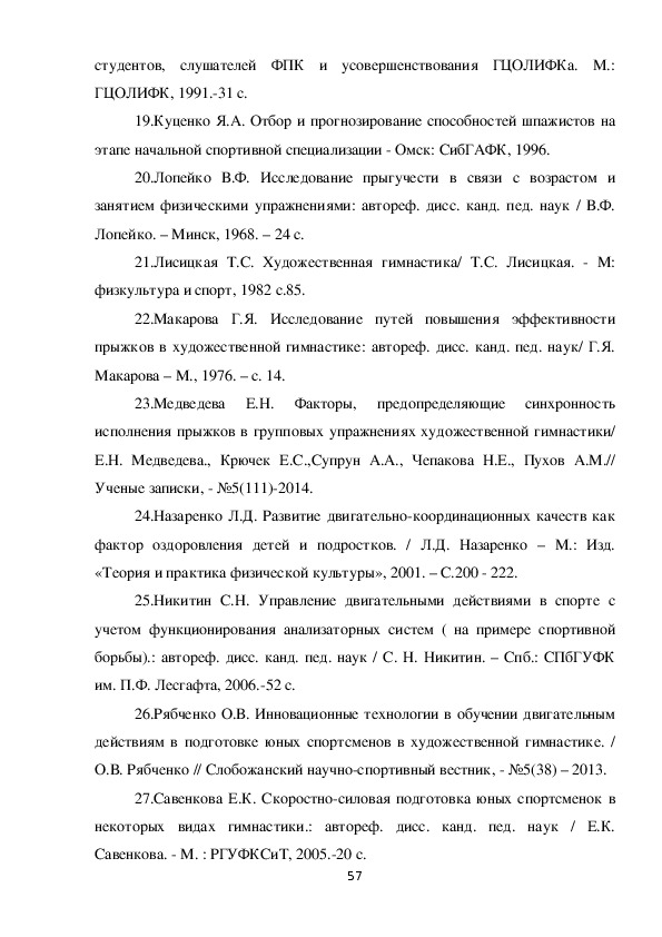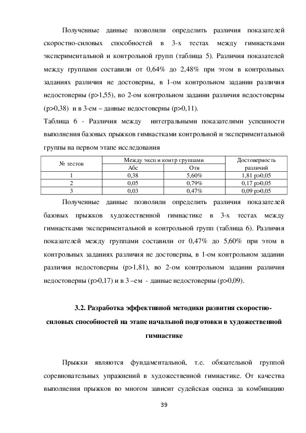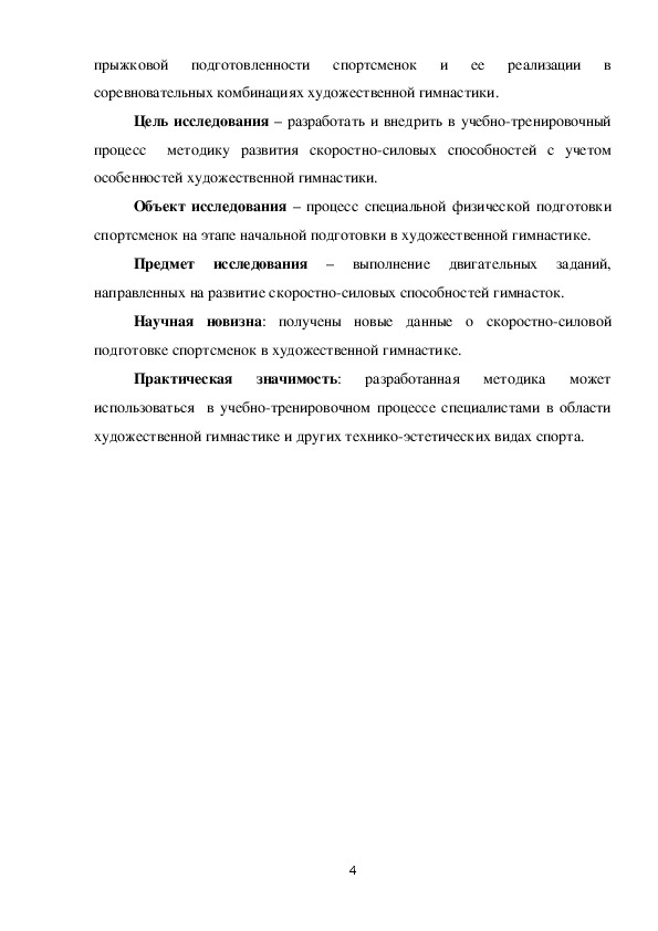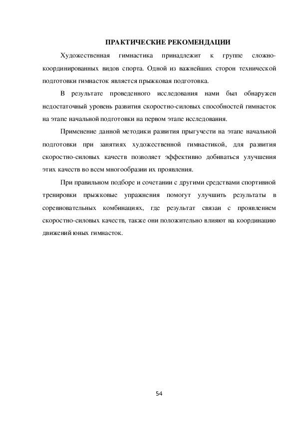 совершенствования системы подготовки гимнасток.
