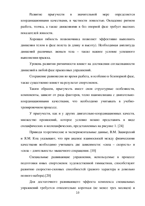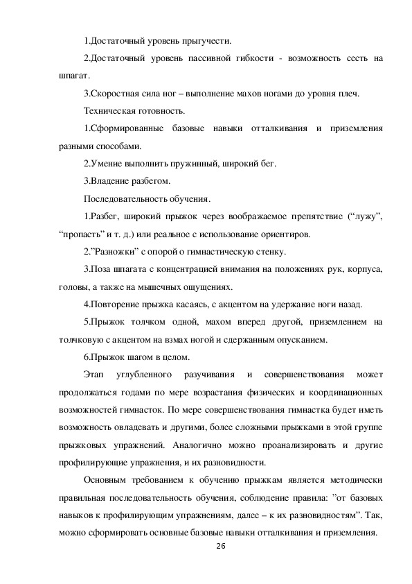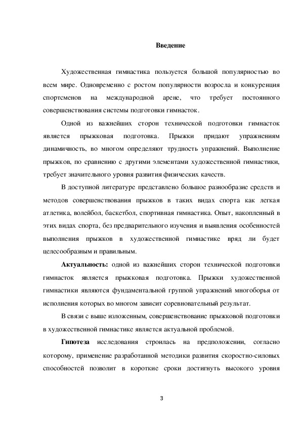 В доступной литературе представлено большое разнообразие средств и методов совершенствования прыжков в таких видах спорта как легкая атлетика, волейбол, баскетбол, спортивная гимнастика. Опыт, накопленный в этих видах спорта, без предварительного изучения и выявления особенностей выполнения прыжков в художественной гимнастике вряд ли будет целесообразным и правильным.