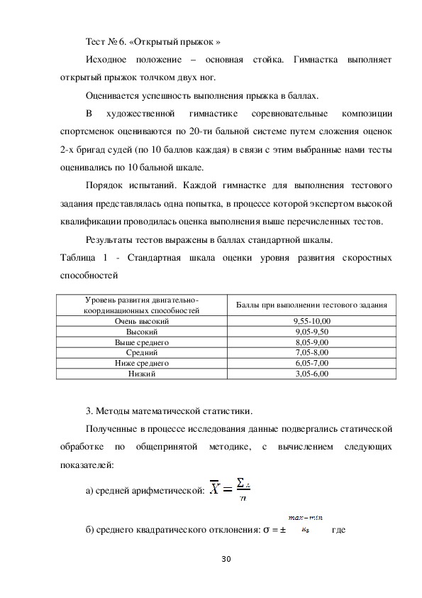 способностей гимнасток контрольной и экспериментальной