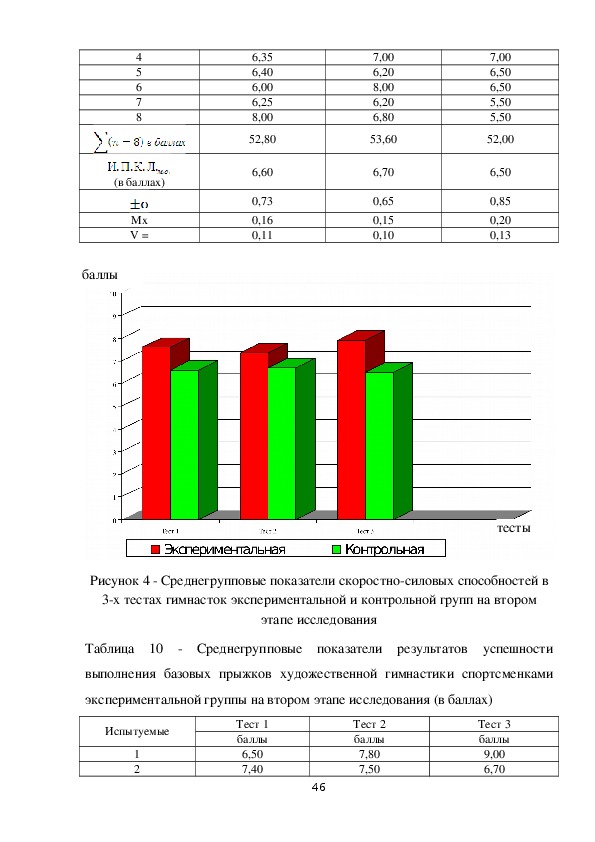 выполнения базовых прыжков гимнастками экспериментальной группы на