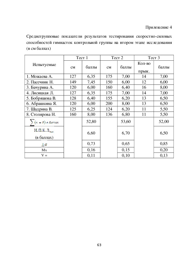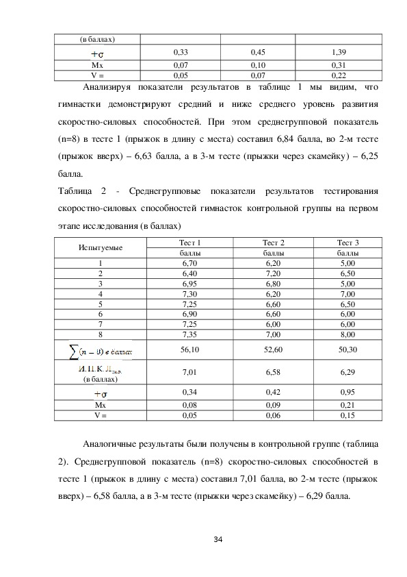 силовых способностей гимнасток контрольных групп на первом и втором