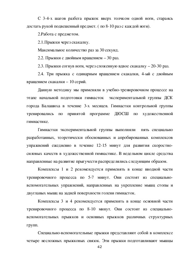 направленных на развитие скоростносиловых способностей гимнасток.