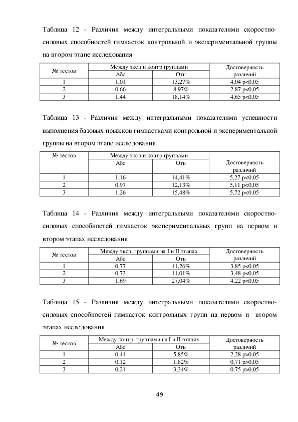 48Таблица 12 Различия между интегральными показателями скоростно