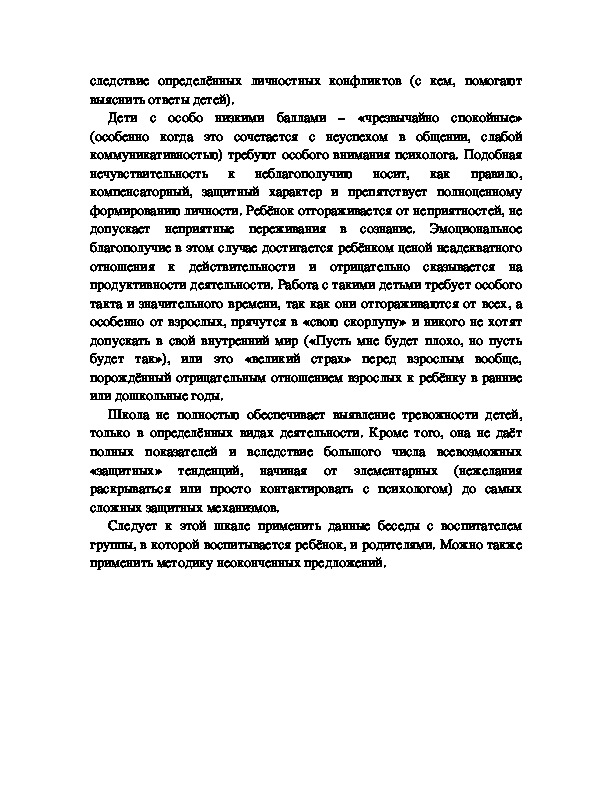 Особого внимания требуют дети с высокой тревожностью (более 20