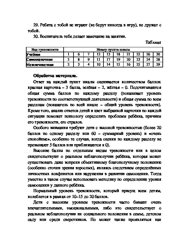 тревожности» для школьников, разработанная А. М. Прихожан по