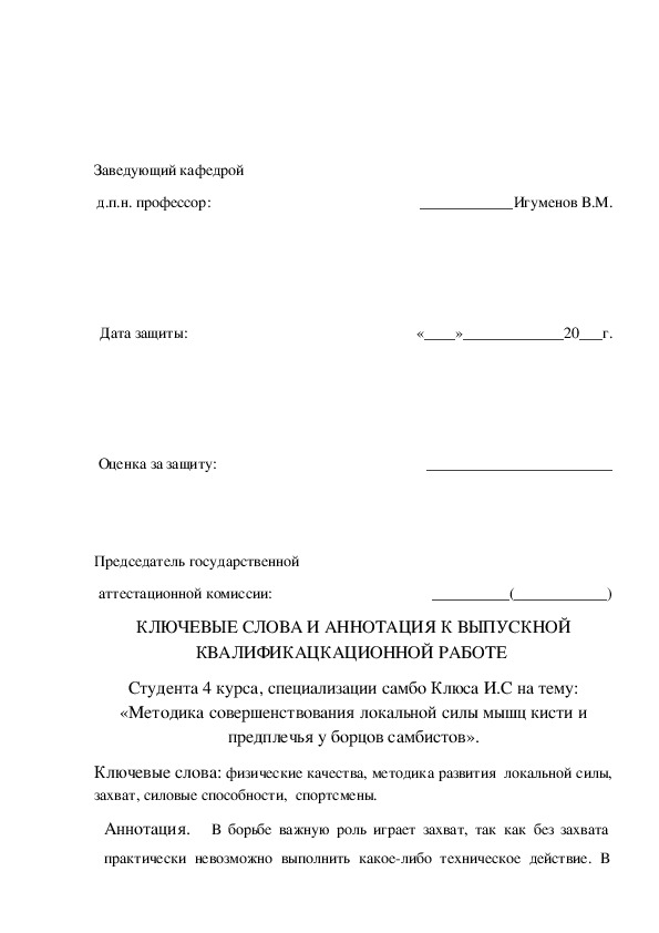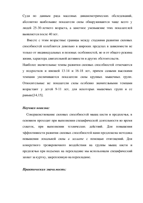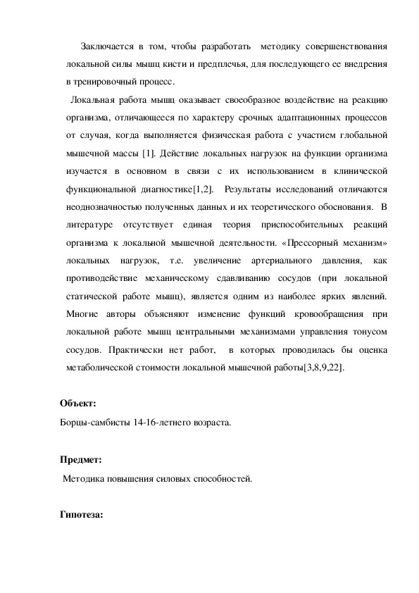 локальной силы мышц кисти и предплечья, для последующего ее внедрения