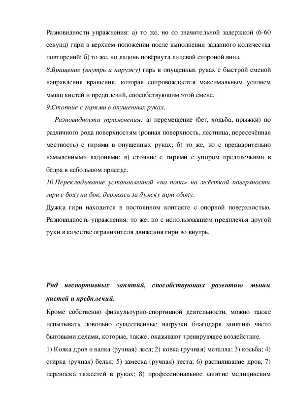 Совершенствование силовых способностей мышц кисти и предплечья, в