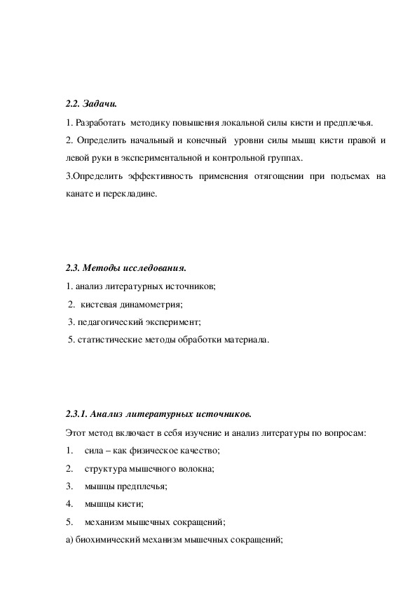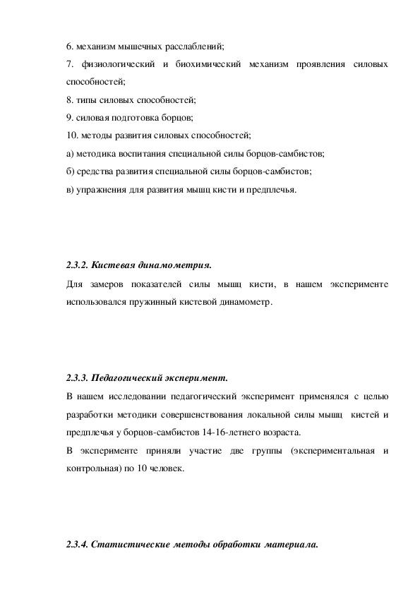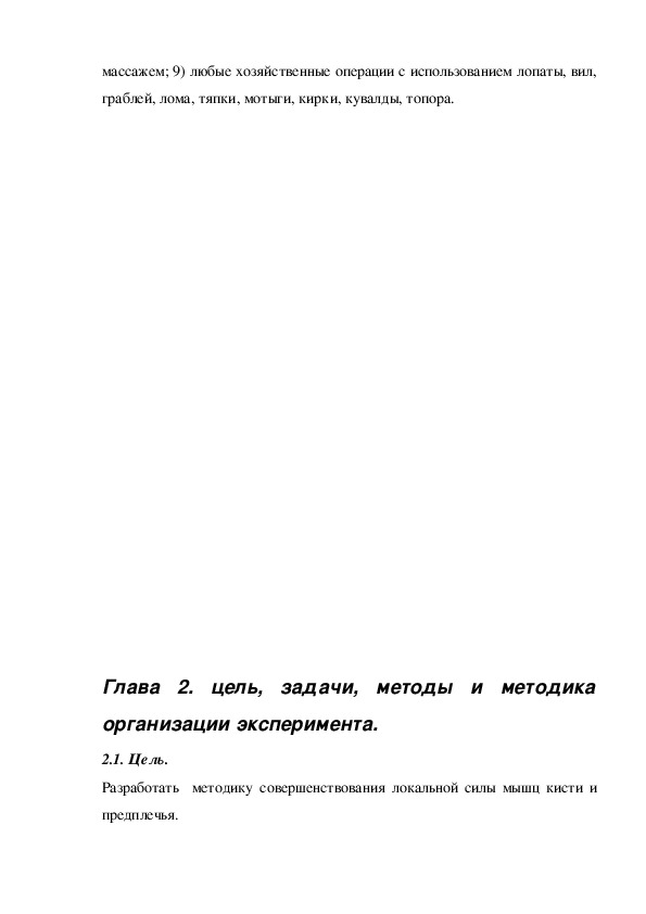1. Разработать методику повышения локальной силы кисти и предплечья.