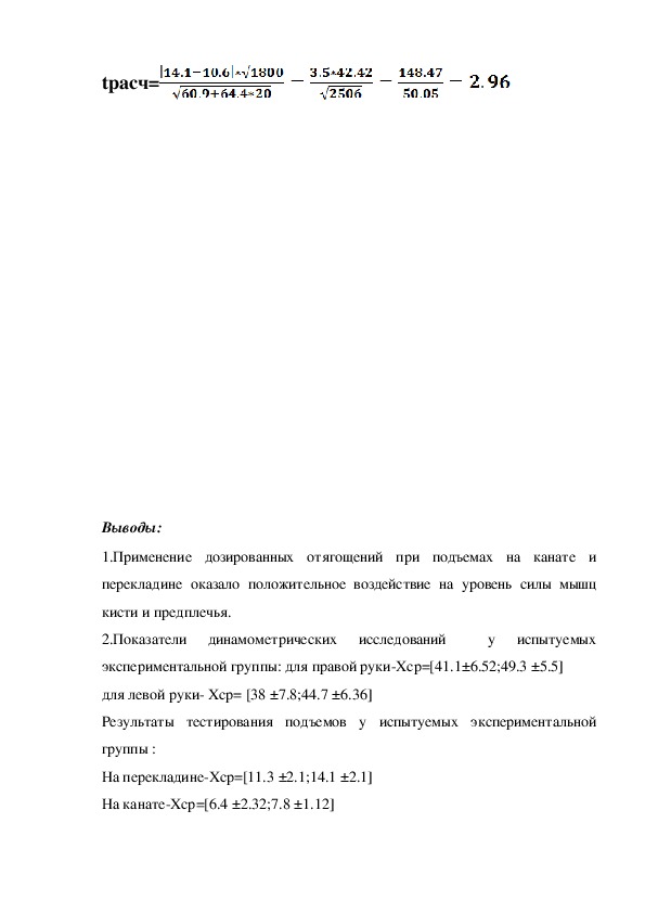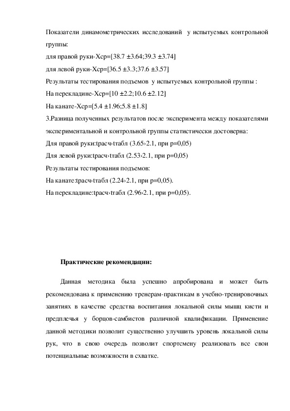 локальной силы мышц кисти и предплечья, при уровне значимости (p=0.05).