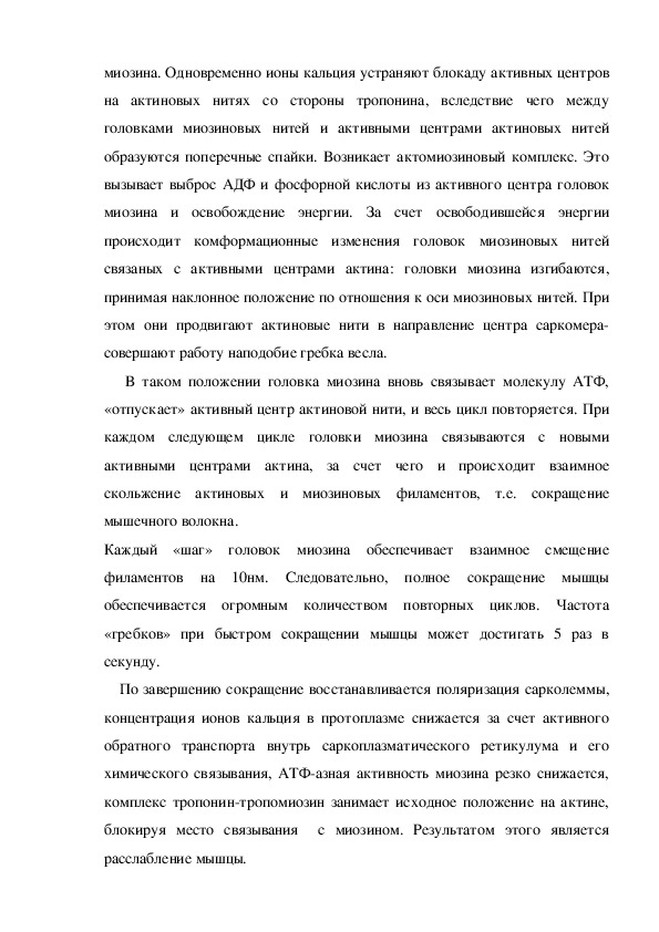 а) биохимический механизм мышечных сокращений;6. механизм мышечных расслаблений;
