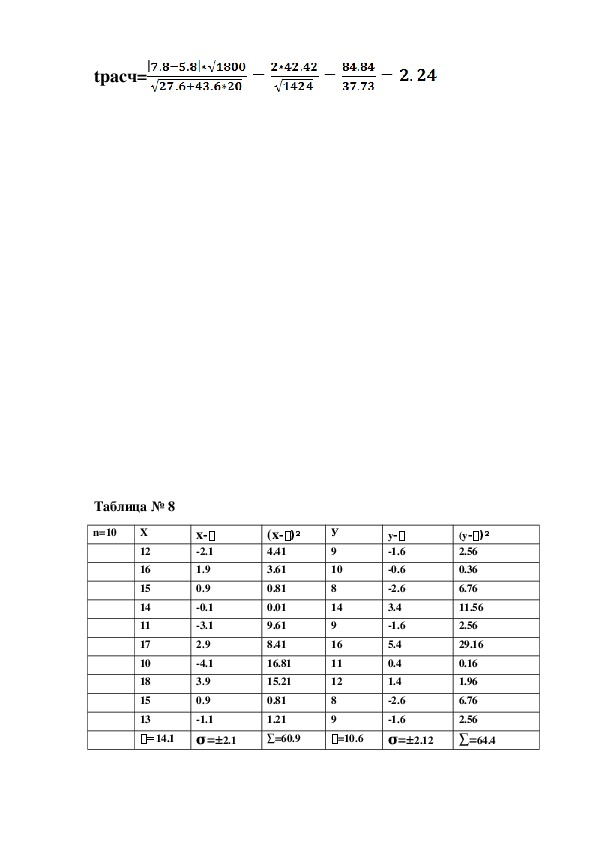 2.3.4. Статистические методы обработки материала.Для достоверности полученных данных, между двумя несвязанными