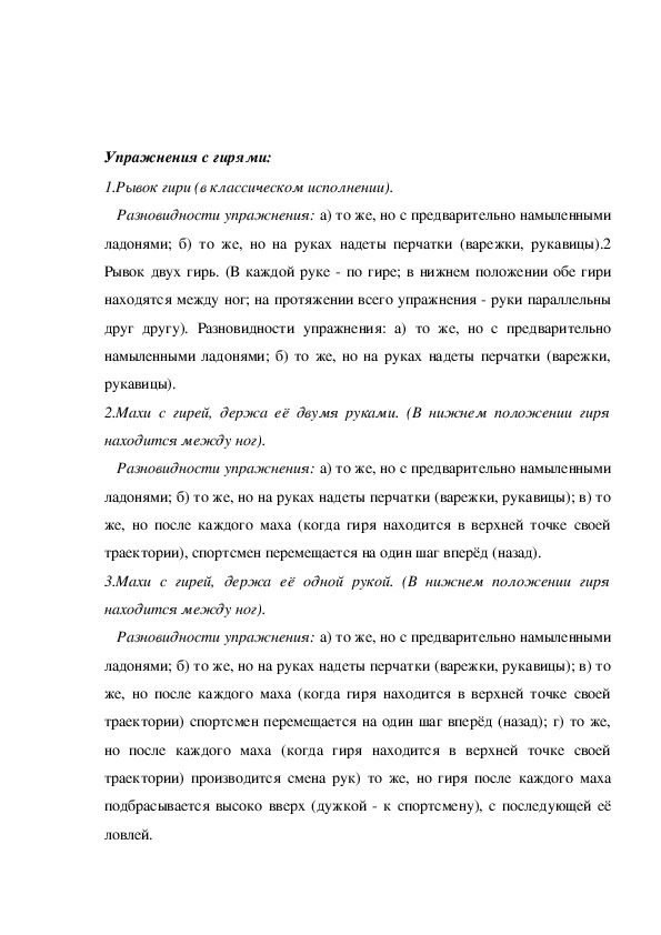 местность) с гирями в опущенных руках; б) то же, но с предварительно