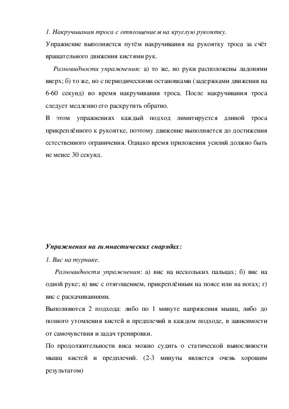 (подтягивание на отворотах куртки и лазание по канату с отягощением)