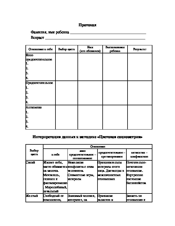 МЕТОДИКА «ЦВЕТОВАЯ СОЦИОМЕТРИЯ»