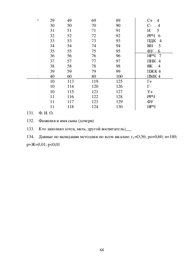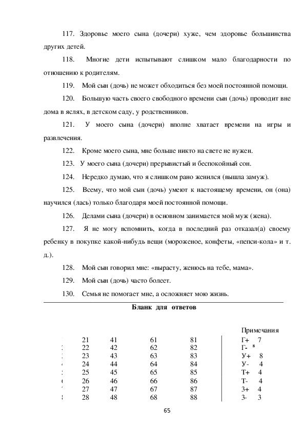 119, 125 (всего десять вопросов) относятся к шкале Г+ (гиперпротекция),