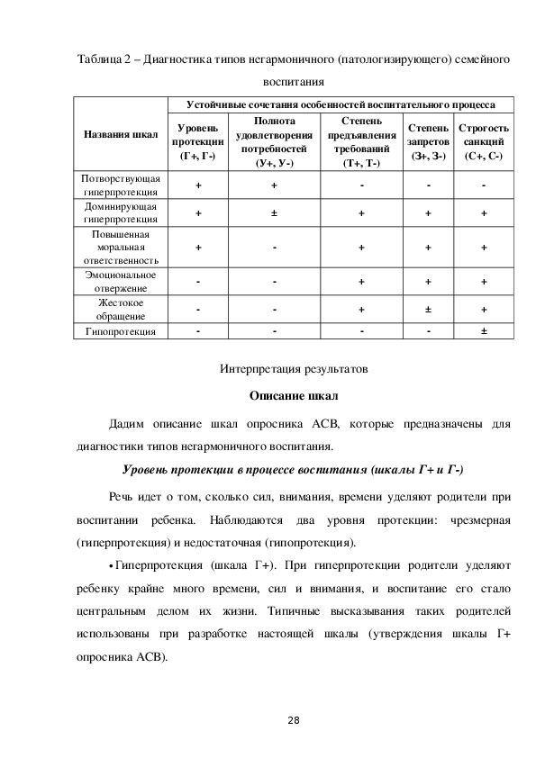 27Таблица 2 – Диагностика типов негармоничного (патологизирующего) семейного