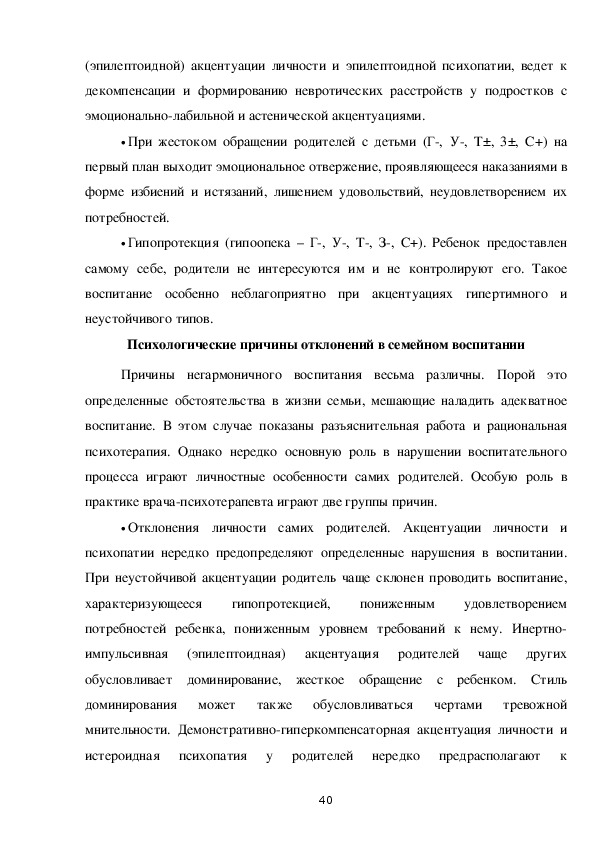 (патологизирующего) семейного воспитания» для установления конкретного,