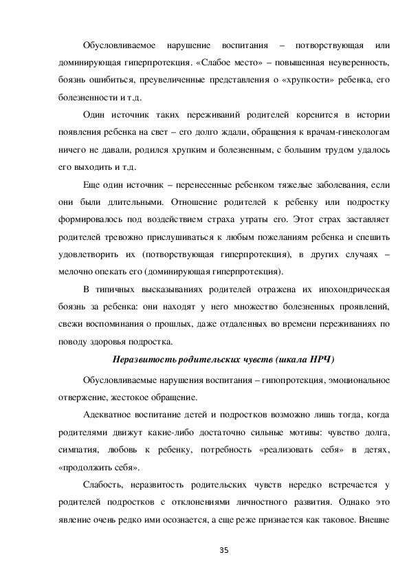 воспитании ребенка. Наблюдаются два уровня протекции: чрезмерная