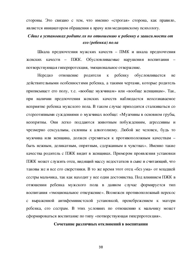 При обнаружении нескольких особенностей (отклонений) воспитания