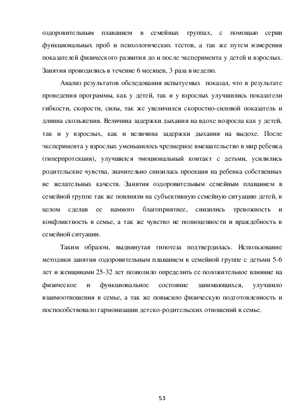 предположение о том, что совместные занятия оздоровительным плаванием в