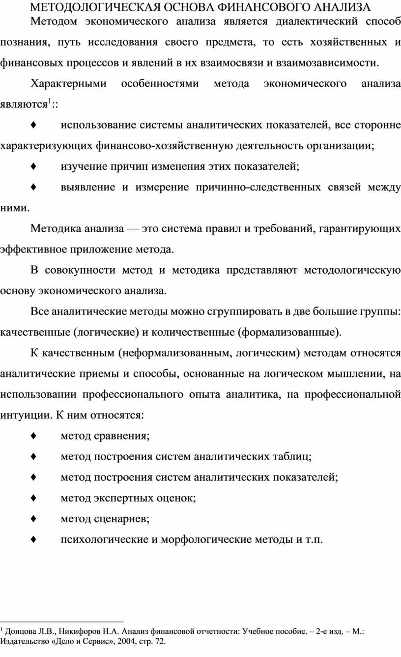 [1] Донцова Л.В., Никифоров Н.А. Анализ финансовой отчетности: Учебное пособие. – 2-е изд. – М.: Издательство «Дело и Сервис», 2004, стр. 72.