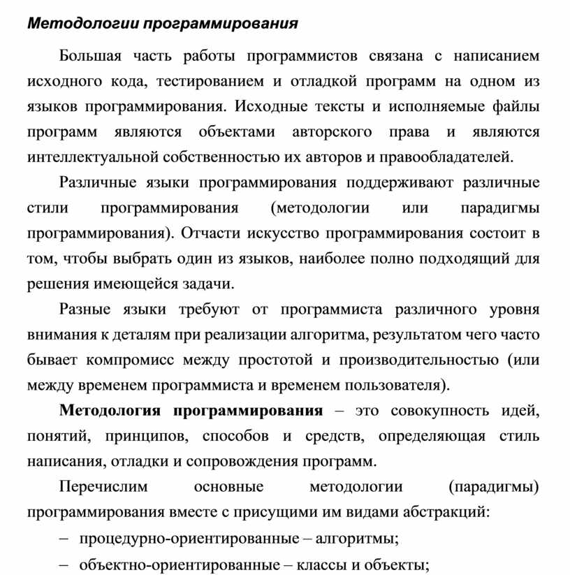 Перечислим основные методологии (парадигмы) программирования вместе с присущими им видами абстракций: