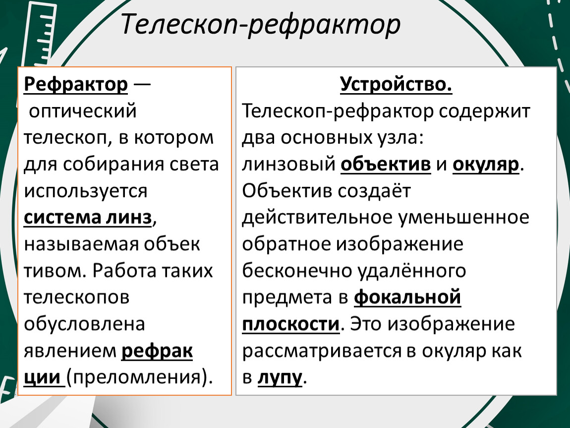 тивом. Работа таких телескопов обусловлена явлением рефрак