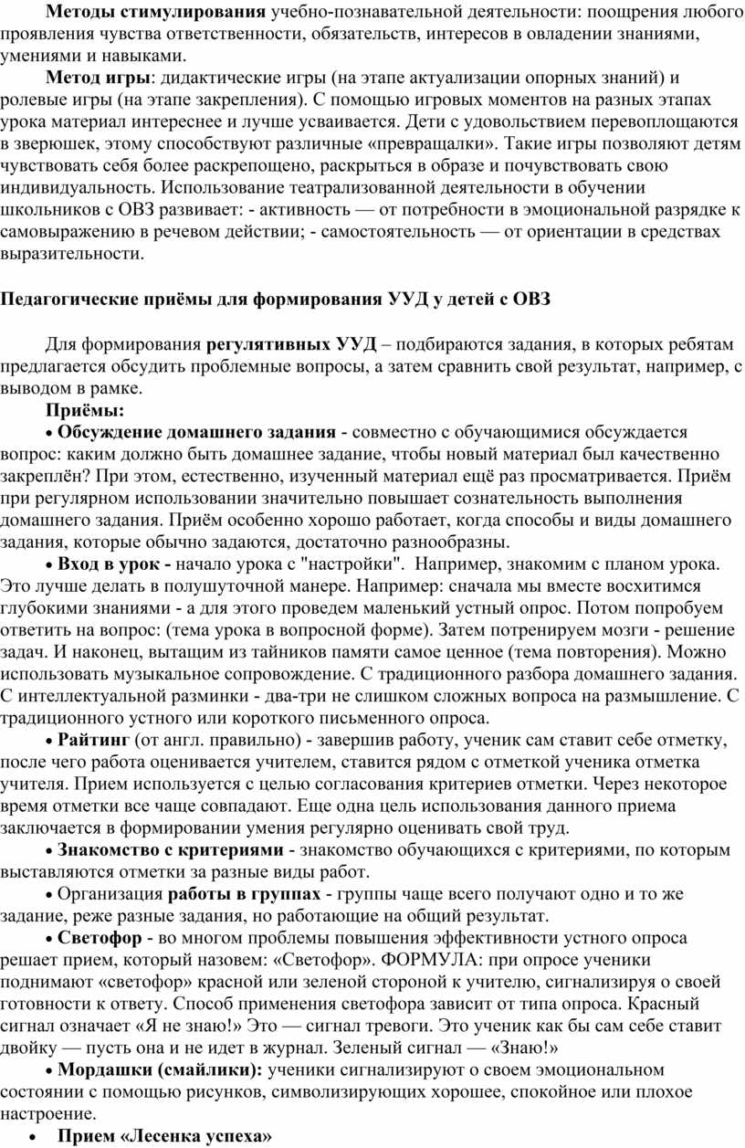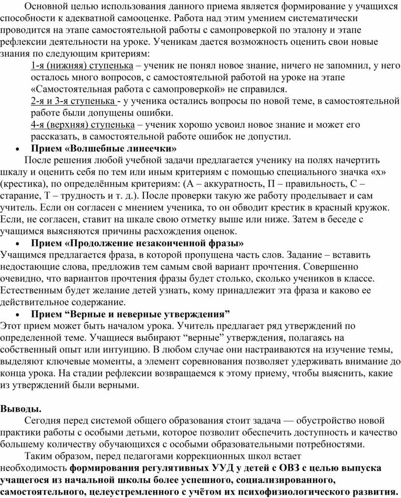 Педагогические приёмы для формирования УУД у детей с ОВЗ