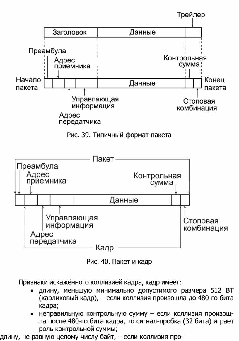· длину, не равную целому числу байт, – если коллизия про- изошла в середине одного из передаваемых байтов.