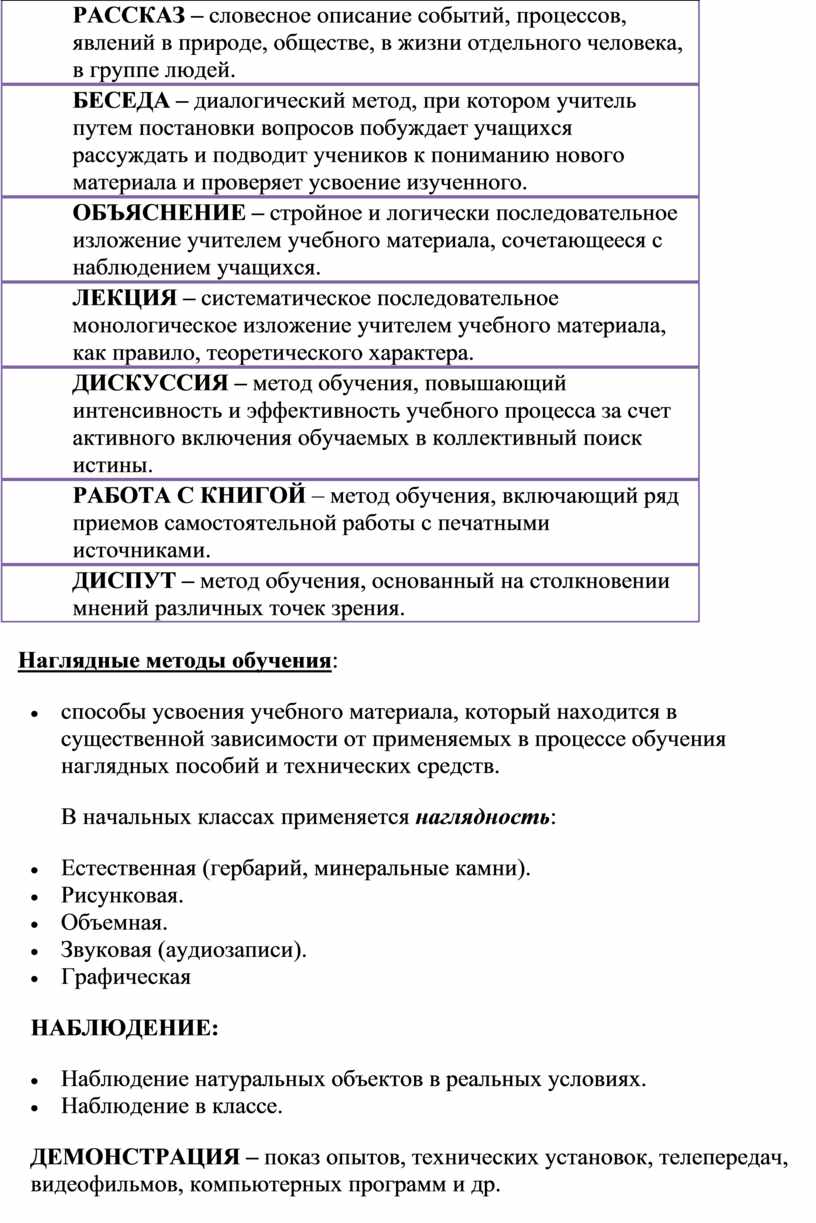 1. Словесные методы обучения: применяются во время подготовки к усвоению нового материала в процессе его объяснения, усвоения, обобщения и применения.